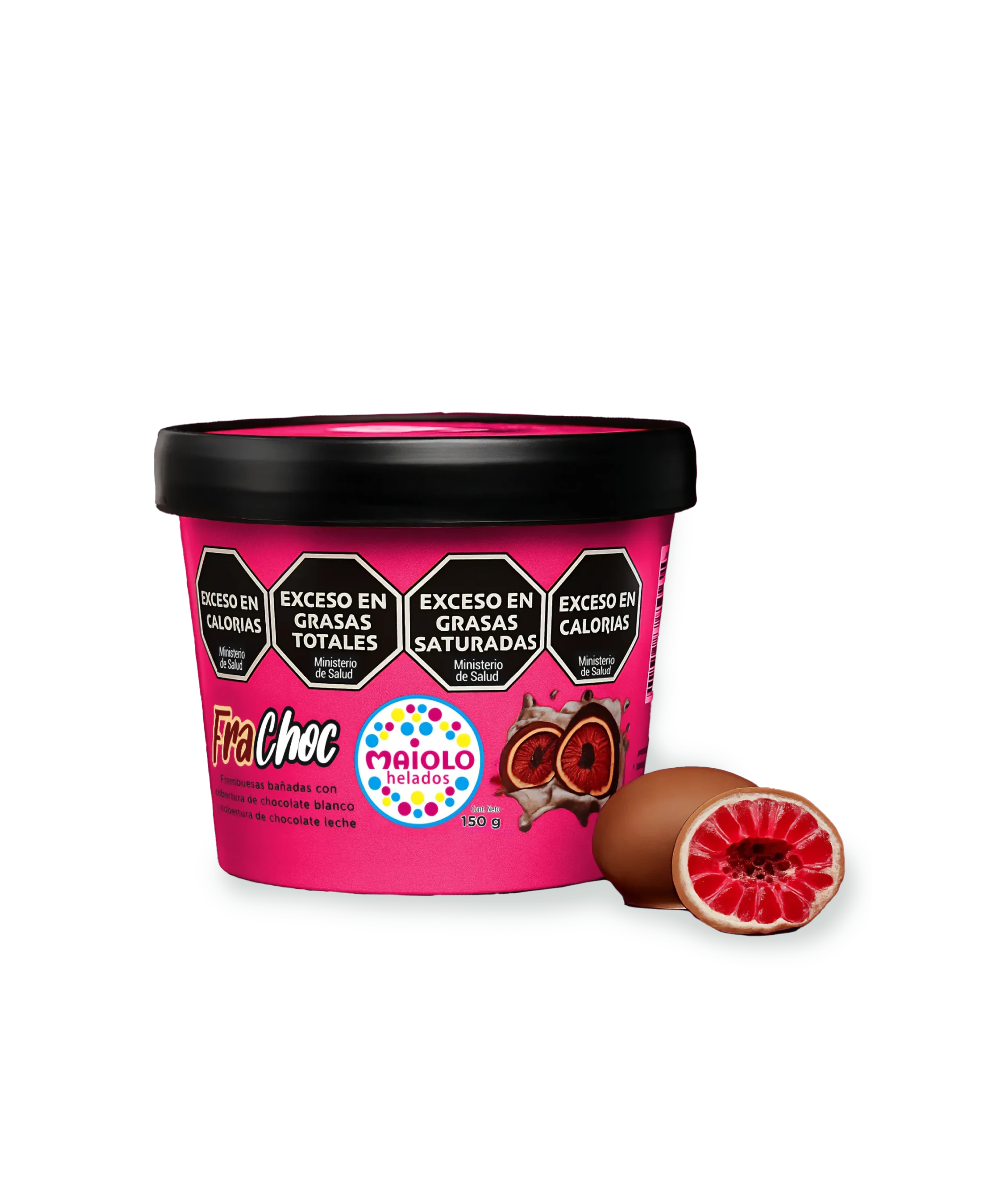 Frachoc, frambuesas bañadas en chocolate blanco y negro.
